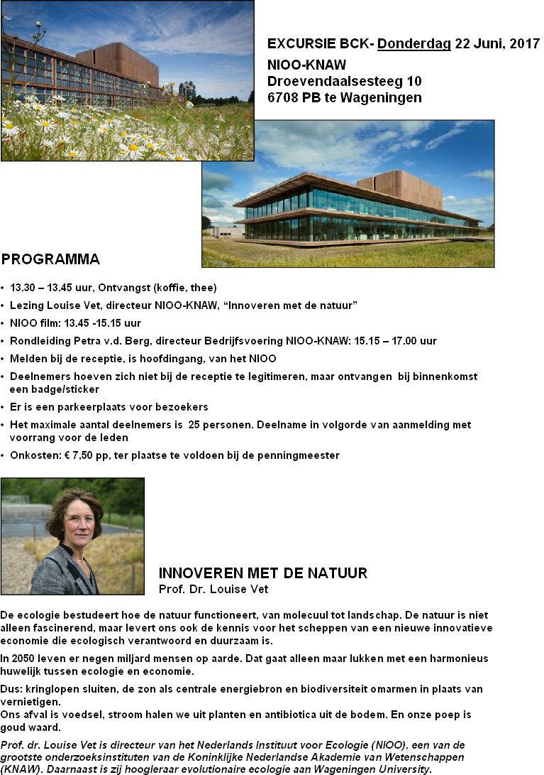 Lezing en excursie bij 'Het duurzaamste laboratorium van Nederland: NIOO (Nederlands Instituut voor Oecologisch Onderzoek) georganiseerd door de Bossche Chemische Kring.