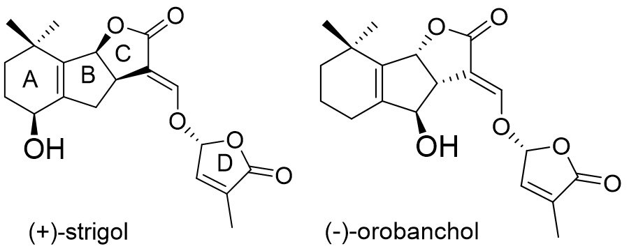 In recent years strigolactones (SLs) became recognized as a new family of plant hormones with a multitude of bio-properties. Interestingly, the first SL ( strigol), was isolated only 60 years ago, but it took 20 years before all structural details of this compound were unveiled. All SLs invariably possess three annulated rings (the ABC scaffold) connected with a butenolide ring via an enol ether unit.