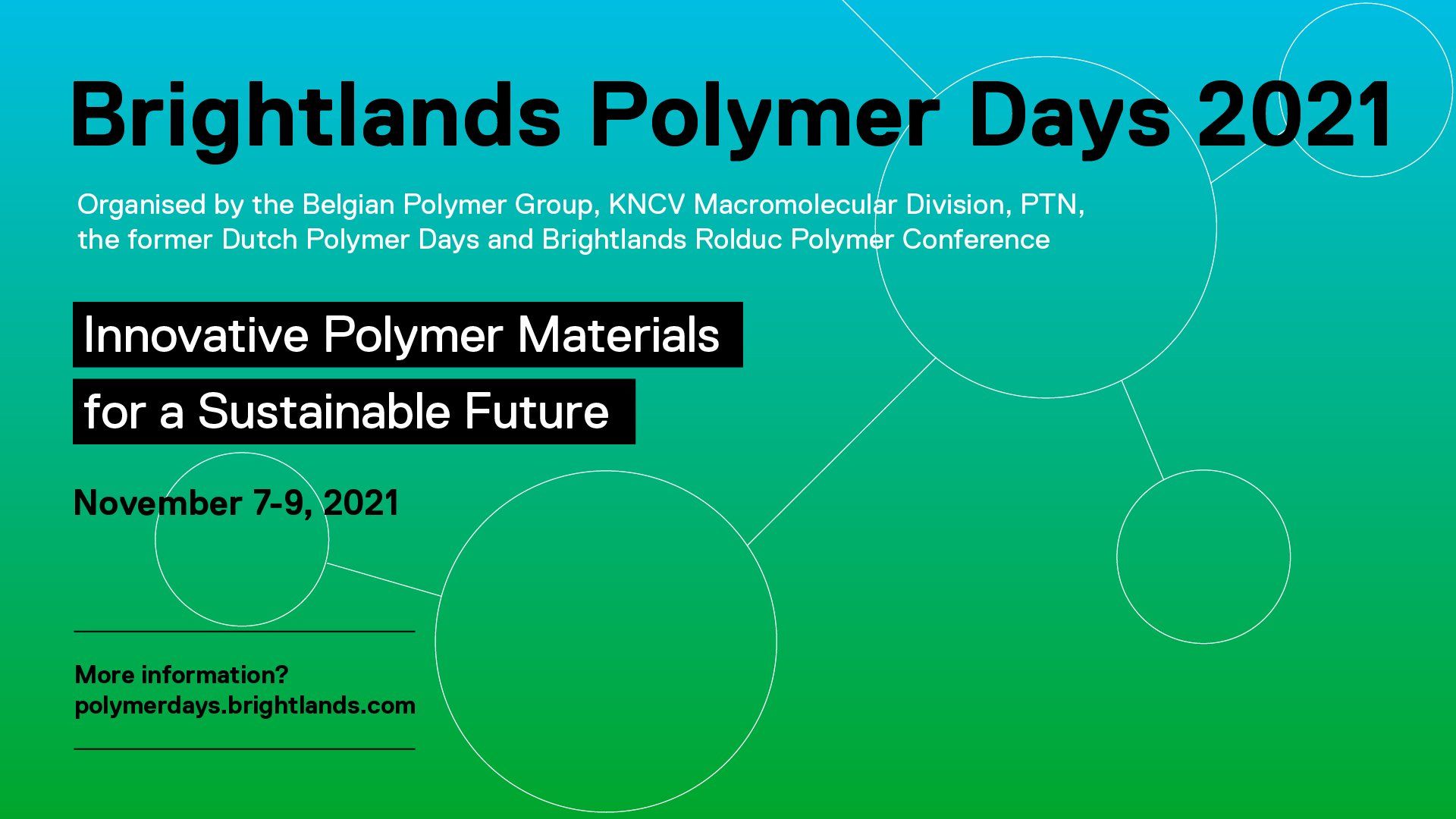 It is our pleasure to announce that Brightlands Polymer Days 2021, will be held from November 7 to November 9, 2021. Brightlands Polymer Days 2021 is a scientific conference in the field of polymer science and technology. It is a collaboration and organised by the Belgian Polymer Group, KNCV Sectie Macromoleculen, PTN - Polymer Technology Netherlands, the former Dutch Polymer Days and Brightlands Rolduc Polymer Conference. These partners have joined forces to start a new scientific conference where academia, from student to Nobel Prize winner, and industry can meet.