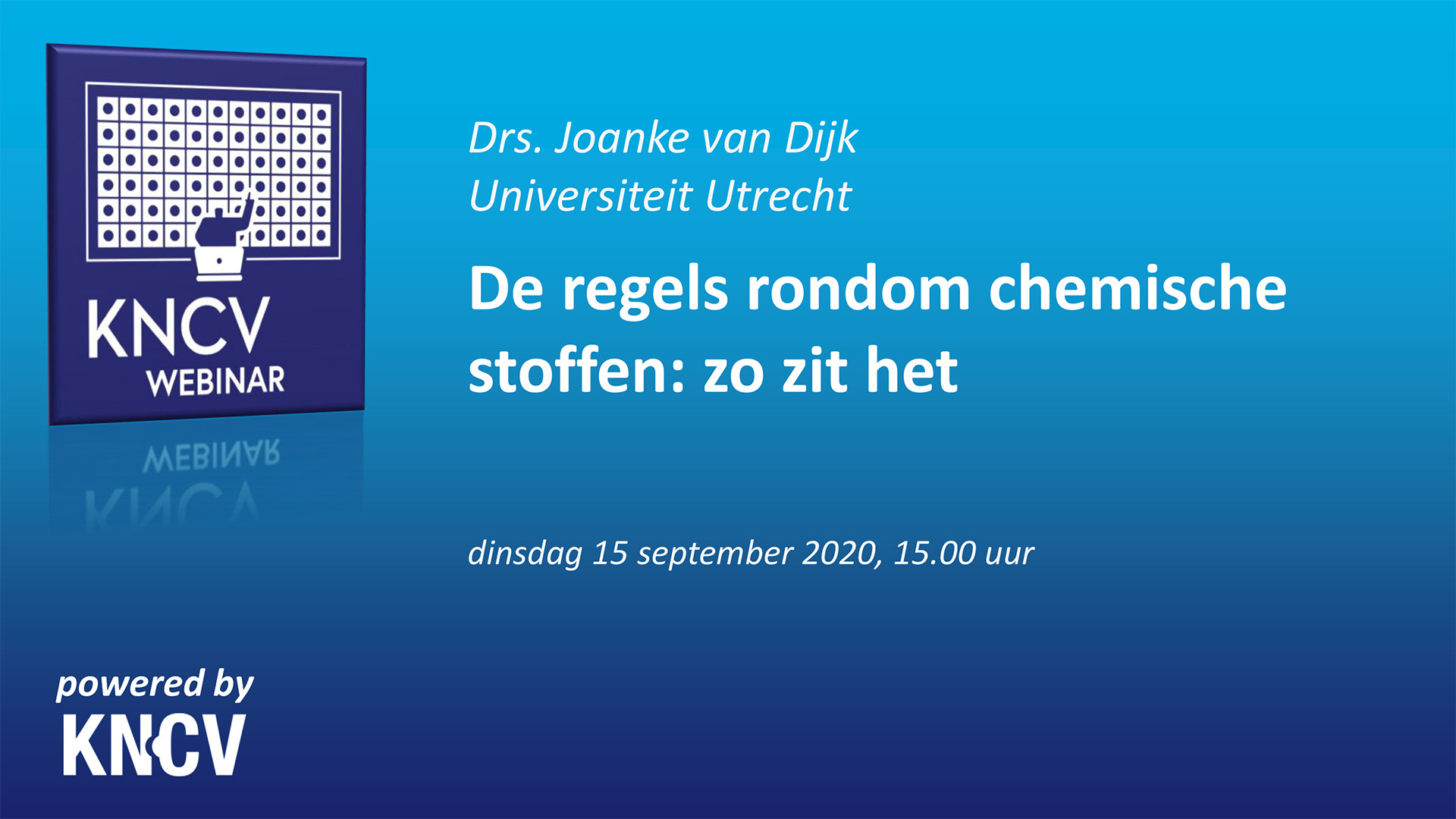 Drs. Joanke van Dijk promoveert op het gebied van regelgeving van chemische stoffen en verzorgt voor de KNCV een webinar over dit onderwerp. Op 15 september van 15:00 – 15:30 zoomt zij in op de regelgeving en beantwoordt ze bovenstaande vragen. Aan het eind van haar presentatie kun je zelf ook vragen stellen. Deelnemen kan via Zoom en Youtube. Om via Zoom te kijken, kun je je hier aanmelden. Via Youtube kun je zonder aanmelden kijken via www.youtube.nl/thekncv.