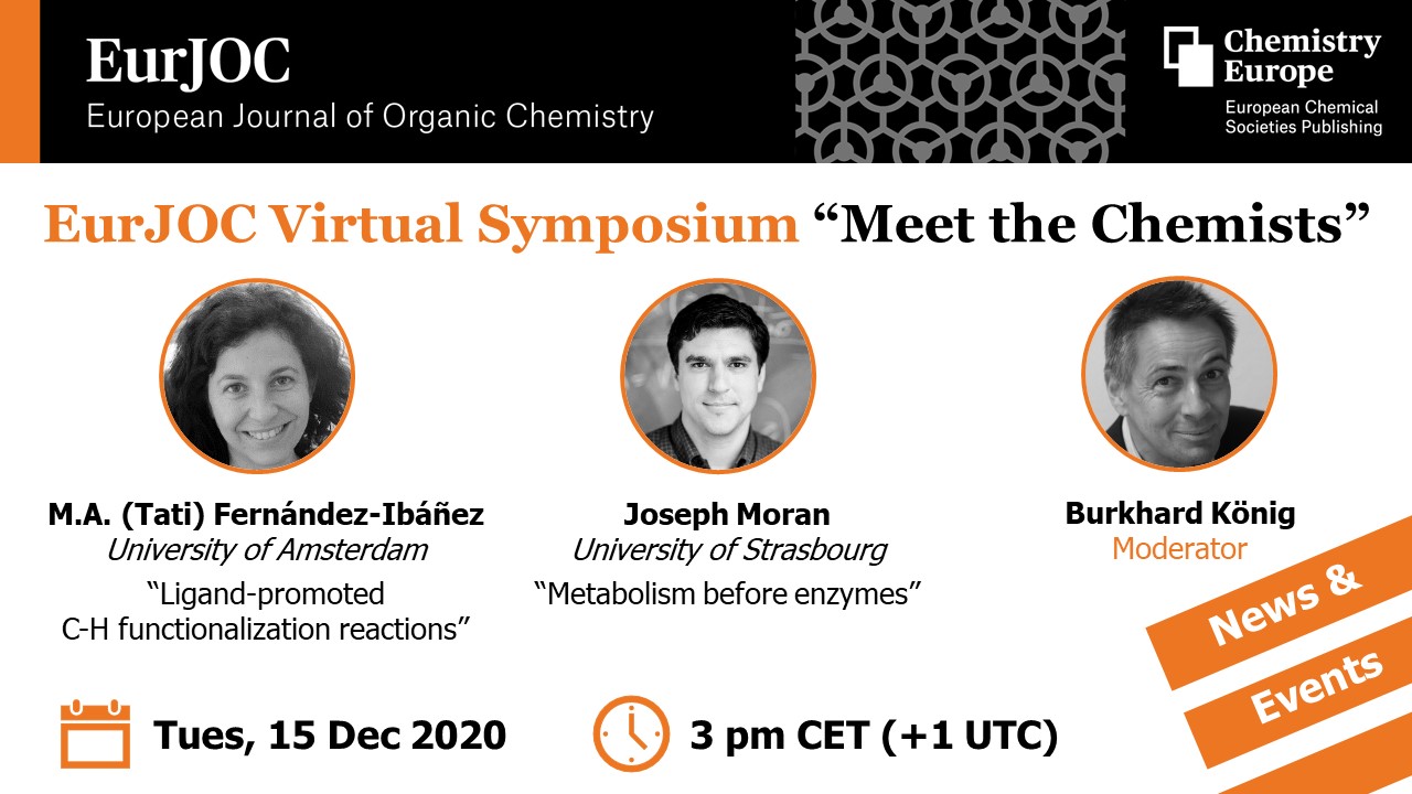 I would like to inform you that the EurJOC editorial team together with chair Burkhard König are excited to announce the 5th edition of the EurJOC Virtual Symposium – Meet the Chemists.