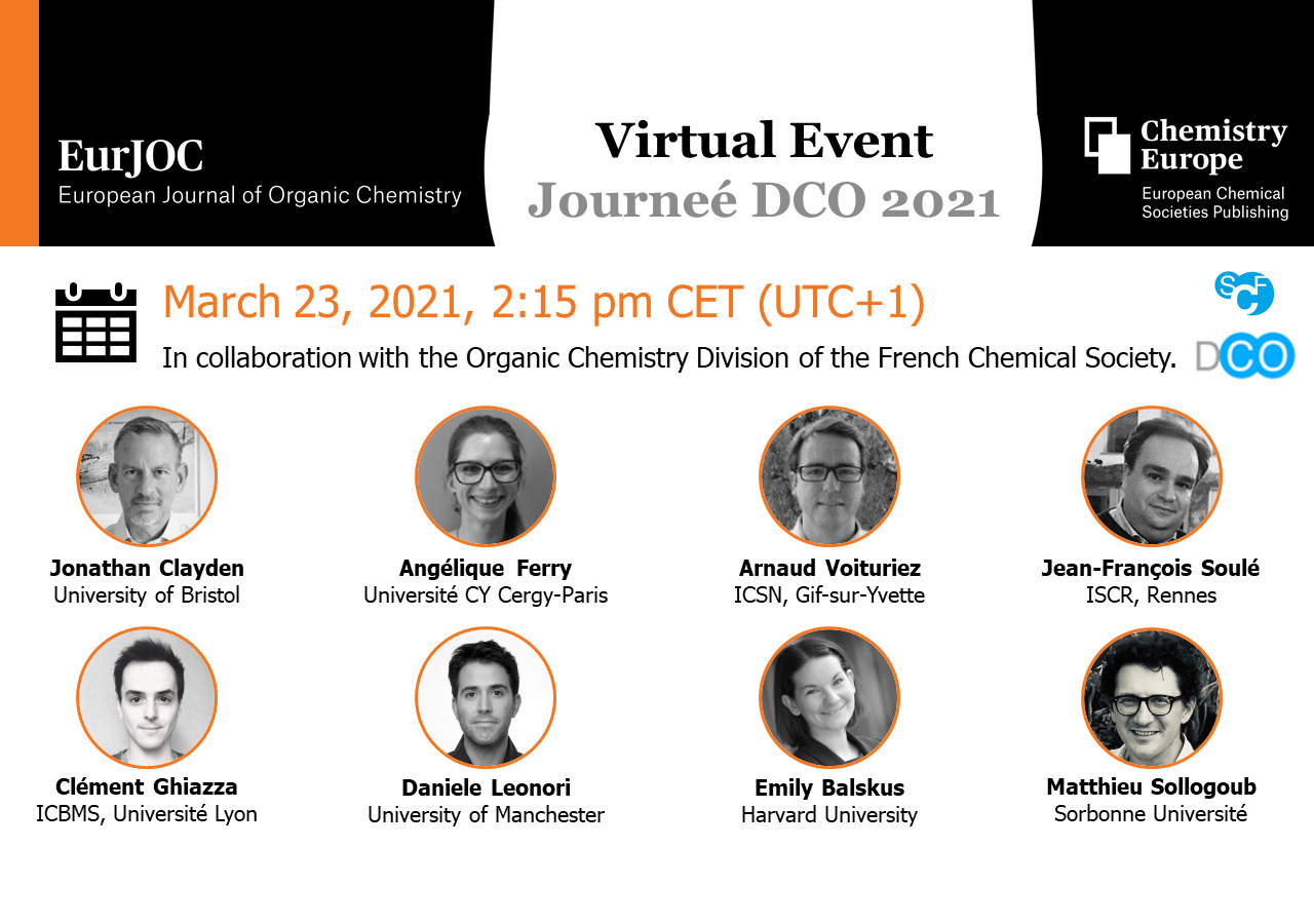 Please join us and our speakers Emily Balskus, Jonathan Clayden and Daniele Leonori, as well as the 2020 DCO Prize Winners Angélique Ferry, Clément Ghiazza, Jean-François Soulé and Arnaud Voituriez for this exciting event.