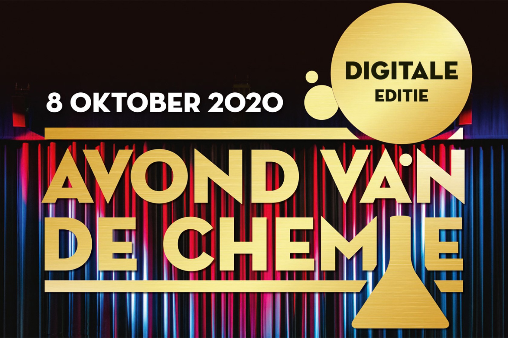 De Avond van de Chemie kent haar eerste lustrum. Na edities in Leiden, Amersfoort, Den Haag en Zwolle is het tijd om het zuiden van het land te bezoeken. Echter maakt de coronacrisis het momenteel onmogelijk om in een volle theaterzaal bijeen te komen, vandaar dat wij een digitale Avond van de Chemie 2020 organiseren op 8 oktober 2020. Het programma begint om 19.30 uur met inloop vanaf 19.00 uur. Tijdens de inloop is het mogelijk om met andere deelnemers 1-op-1 te praten en zo te netwerken.