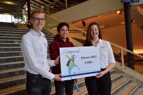 Alex Klinkenberg, was in september op vakantie in de Ardennen toen hij zijn winnende foto maakte. Op de foto is het effect van saponinen te zien. Deze zeepachtige stoffen komen veel voor in veengebieden en worden vaak als beschermingsmiddel uitgescheiden door planten en schimmels. Tijdens NWO CHAINS 2017 kreeg zijn foto de meeste stemmen. Jong KNCV-voorzitter Yacintha Vermeer en Jong KNCV-bestuurslid Martijn Naaktgeboren reikten afgelopen vrijdag de cheque ter waarde van 500 euro uit aan de winnende fotograaf.