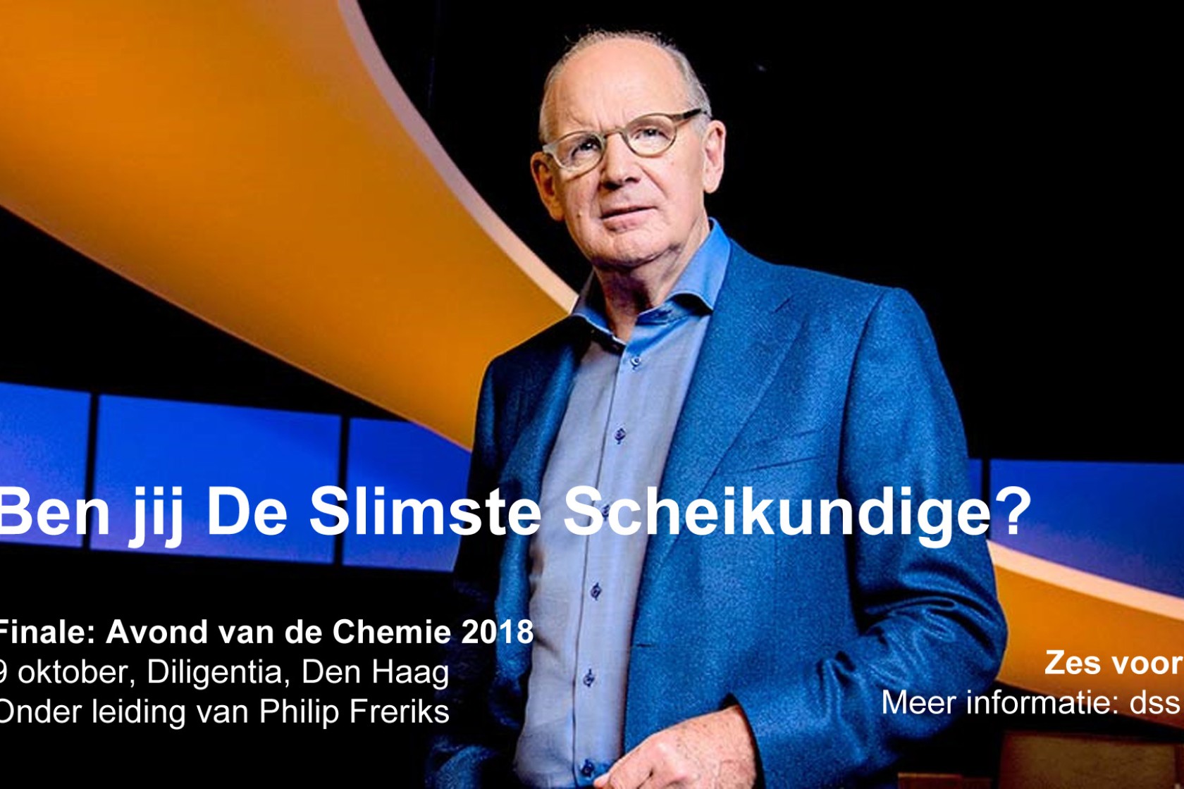 De finale van De Slimste Scheikundige zal plaatsvinden tijdens de Avond van de Chemie op 9 oktober onder leiding van Philip Freriks.