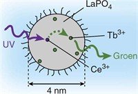 Beide ionen fixeerden ze op een vaste afstand van elkaar door ze te verwerken in nanokristallen van lanthaanfosfaat. Die dispergeerden ze vervolgens in uiteenlopende oplosmiddelen.
